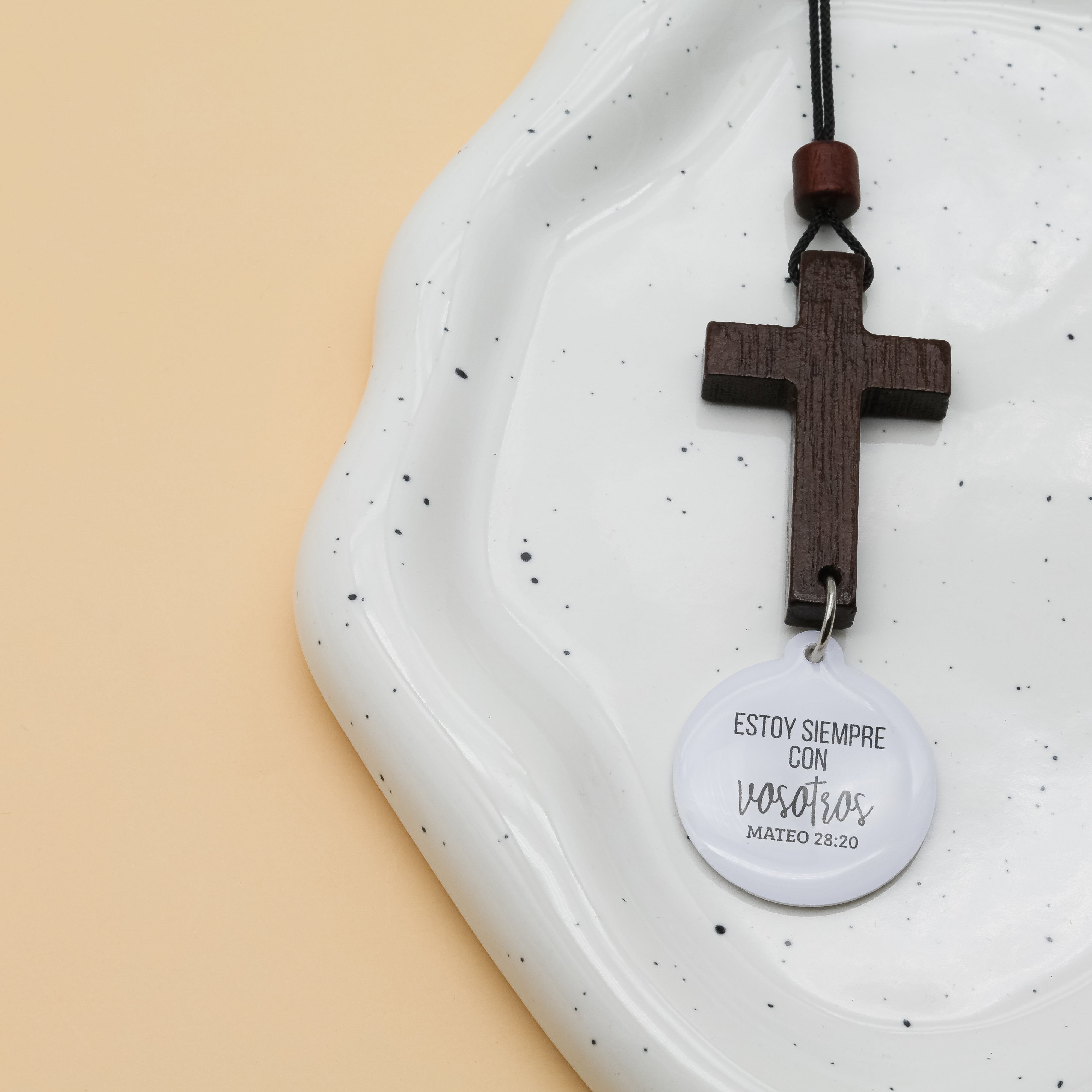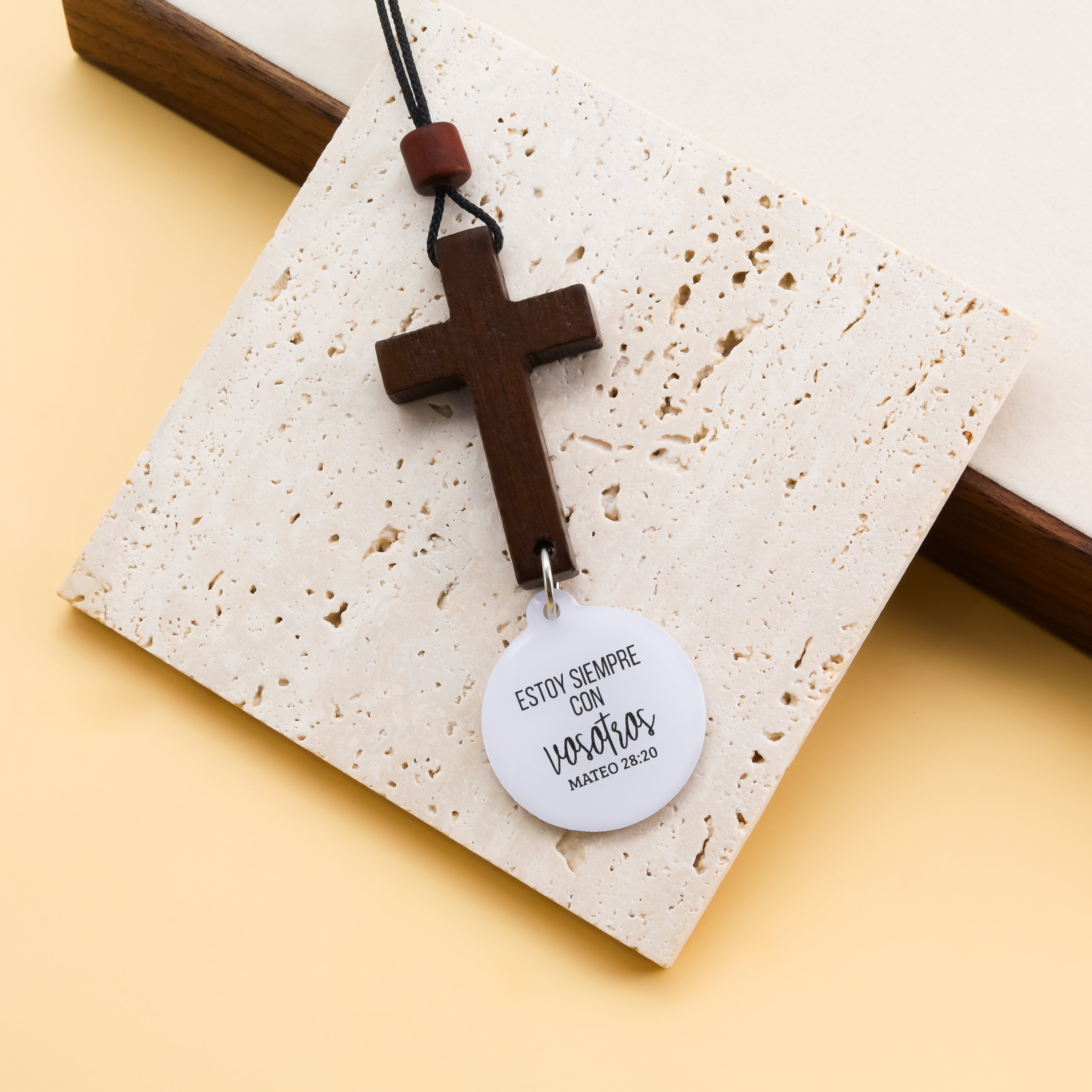 Lleva contigo un símbolo de fe y conexión cada vez que tomas el volante. Esta cruz colgante, elaborada a mano en noble madera de nogal, está equipada con un discreto dispositivo NFC, que al acercar el móvil, te conecta directamente con oraciones, mensajes espirituales o contenido especial preparado para ti.
