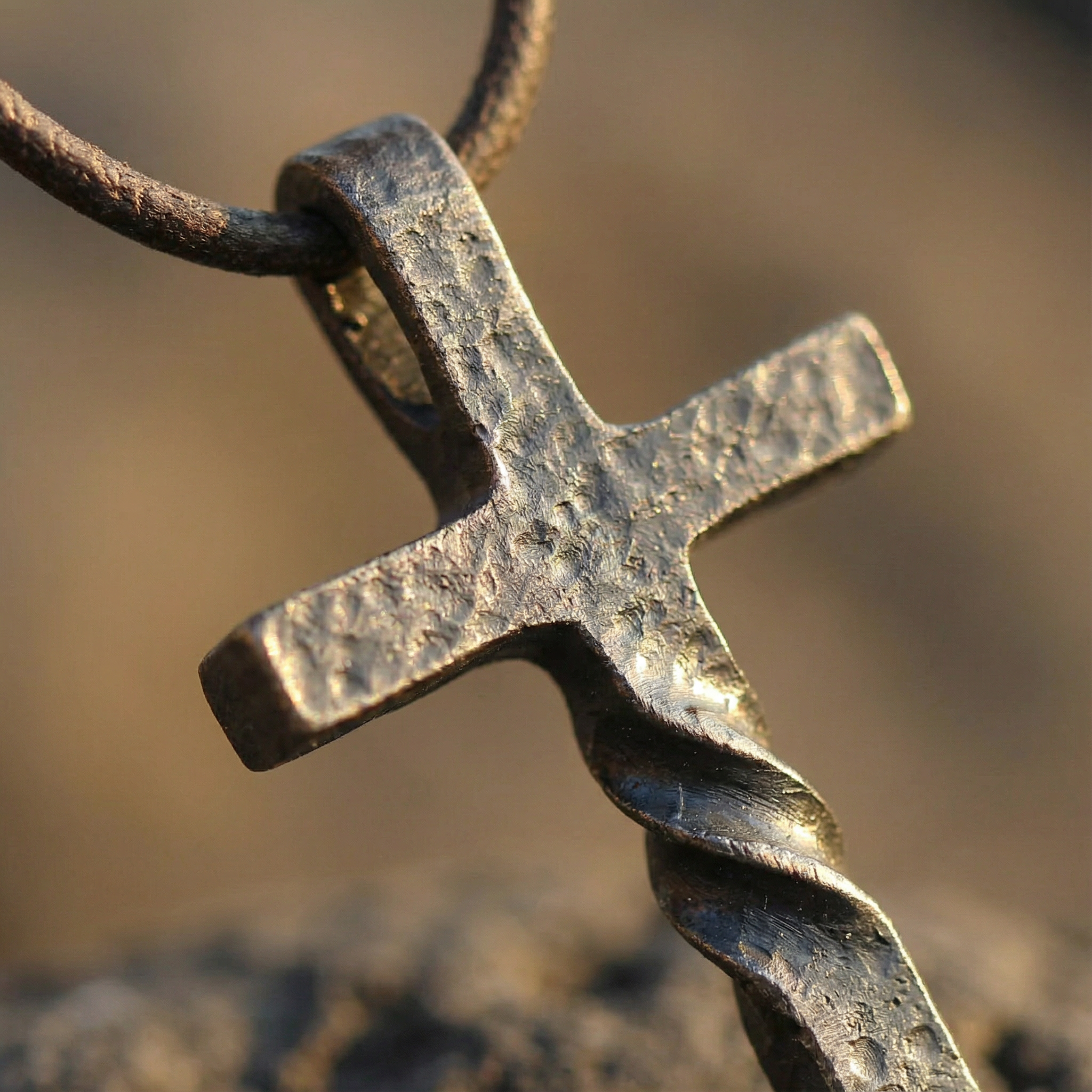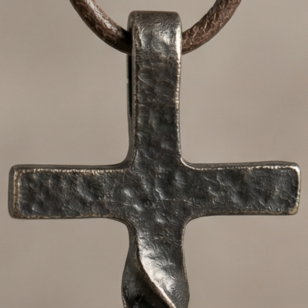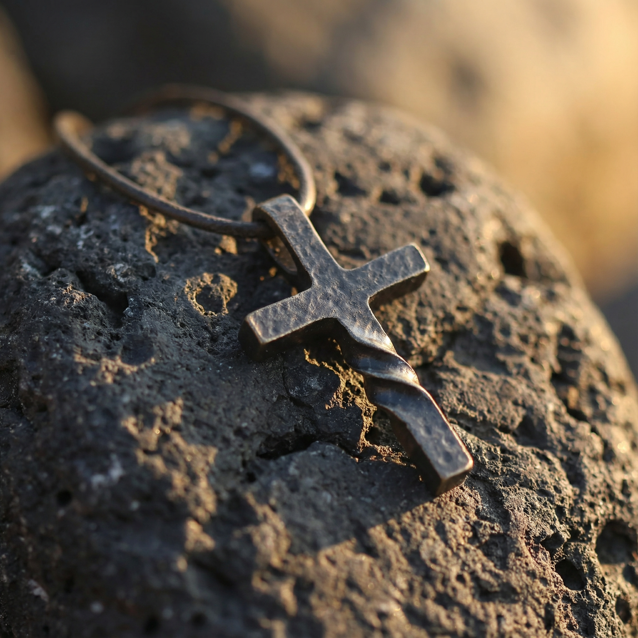 La mayoría de colgantes con cruz que ves hoy en día son lisos, planos y producidos en serie. Cumplen una función estética, pero no transmiten nada.