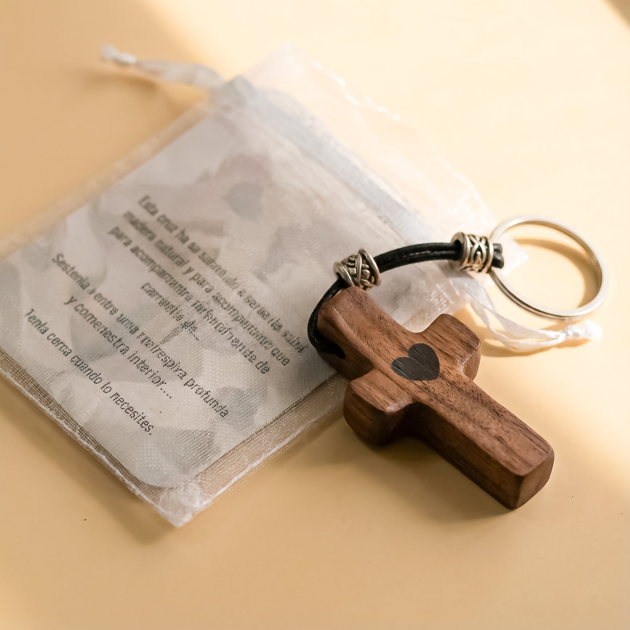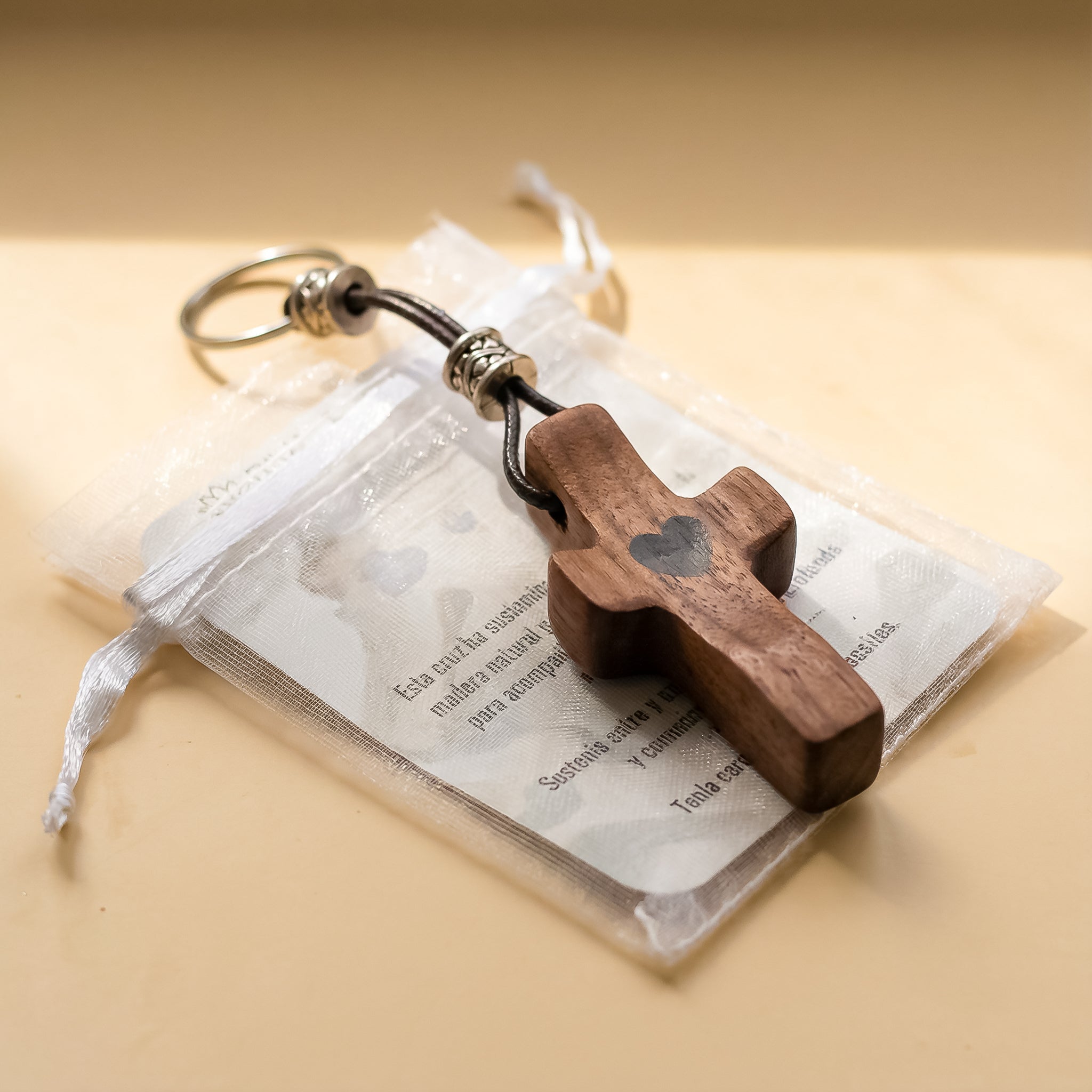 Sets llaveros Cruz de Madera de Nogal con Corazón | Unión con Alma, Detalle con Significado