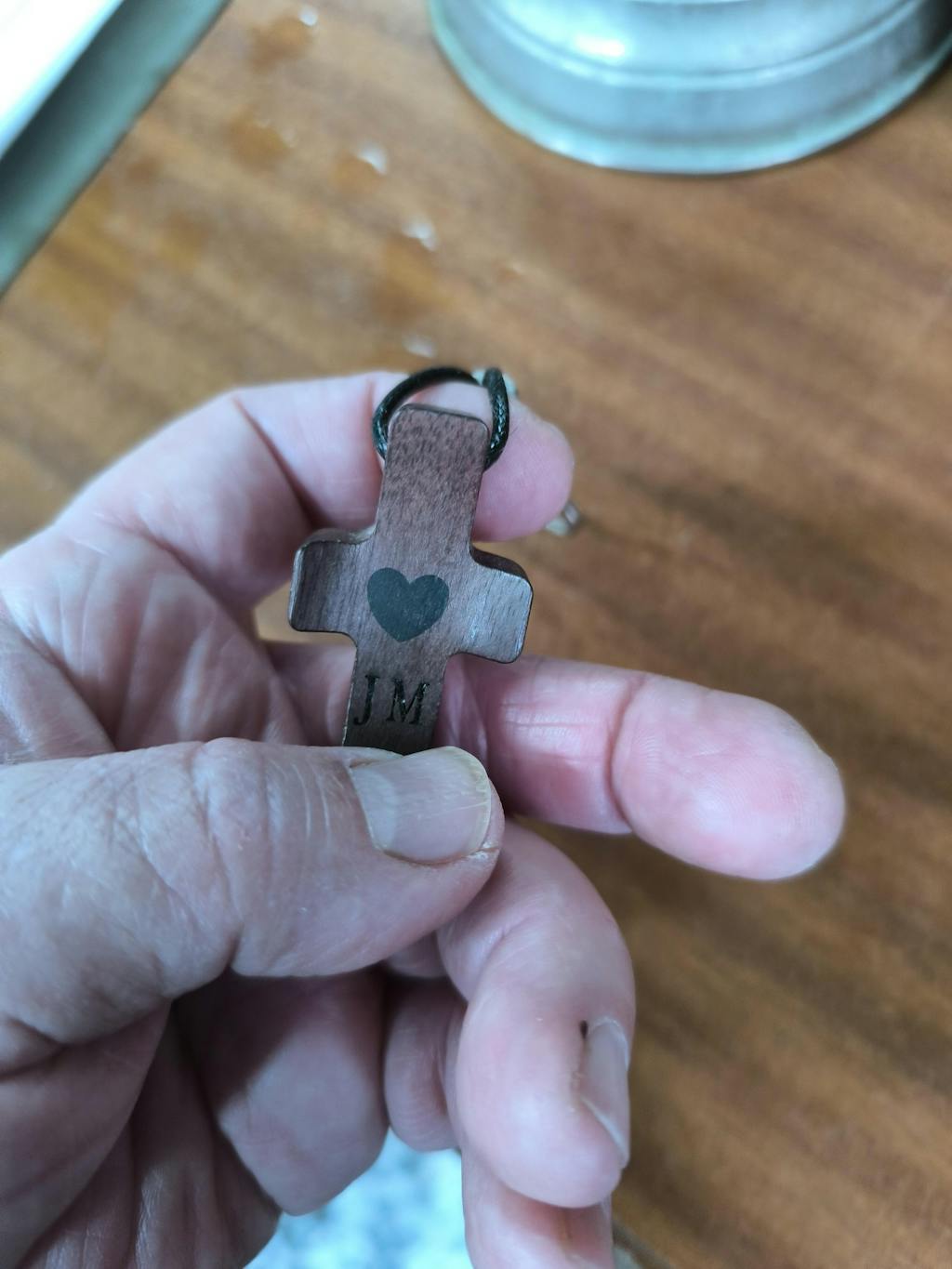 Llavero Cruz de Madera de Nogal con Corazón | Unión con Alma, Detalle con Significado