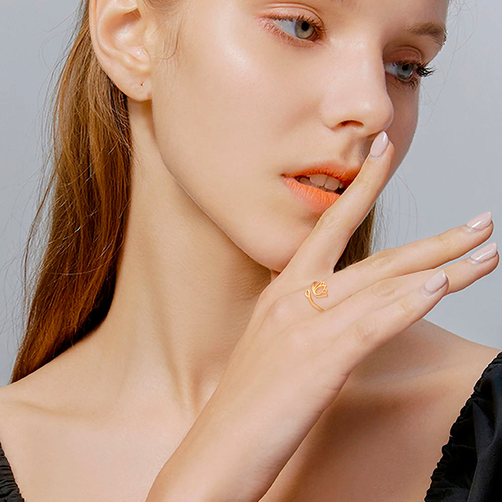 El Anillo Mirage de Flor de Loto de Acero Inoxidable Ajustable es una obra de arte que fusiona la elegancia atemporal con el simbolismo espiritual de la flor de loto. Su diseño intrincado presenta una exquisita flor de loto en plena floración, con pétalos delicadamente esculpidos que capturan la esencia de la belleza natural. Fabricado con acero inoxidable de alta calidad, este anillo no solo garantiza durabilidad y resistencia, sino que también ofrece la posibilidad de ajustarlo para adaptarse cómodamente a diferentes tamaños de dedo.