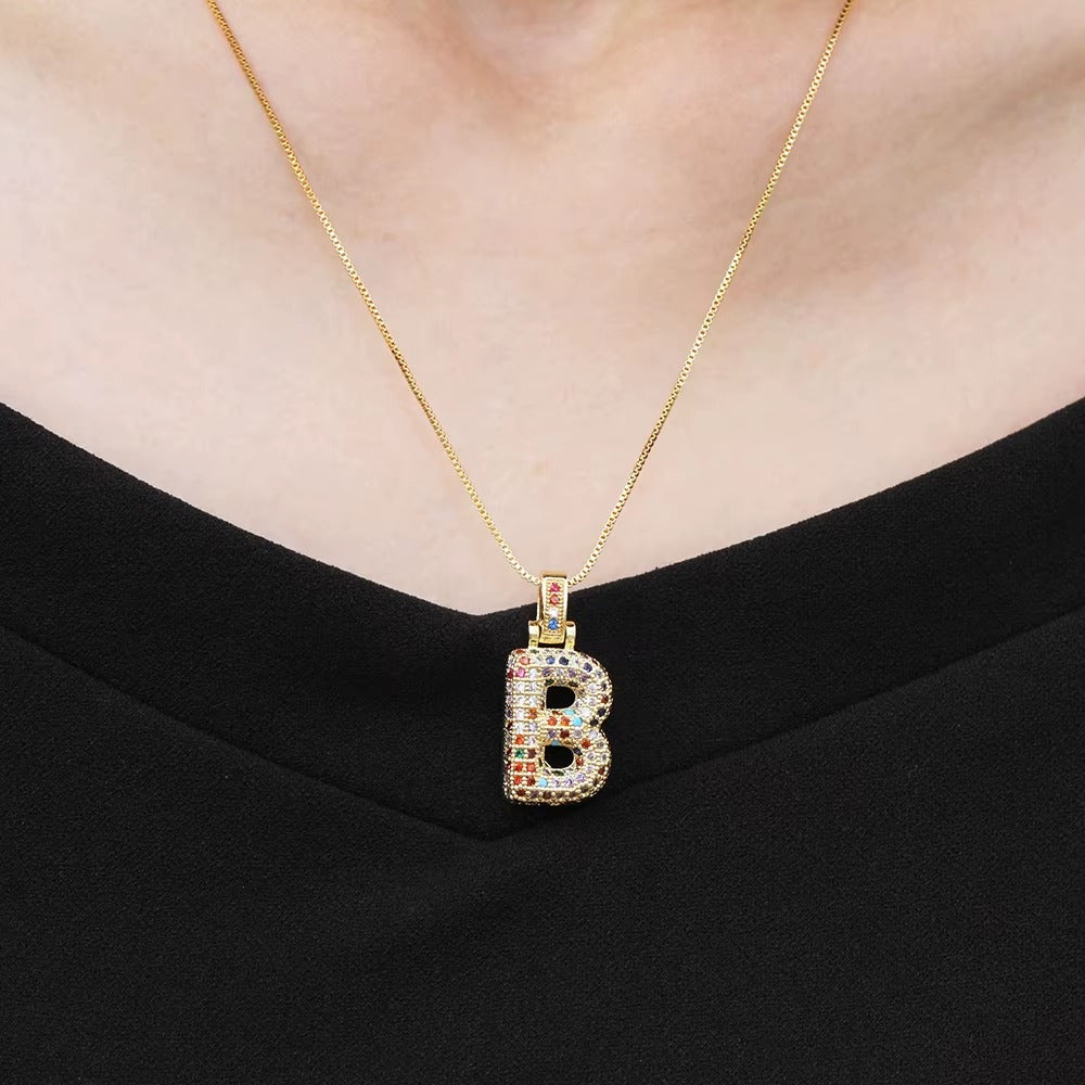 Este colgante "bubble letter" está bañado en oro de 18 quilates y cubierto de circonitas multicolor que captan la luz desde cualquier ángulo.