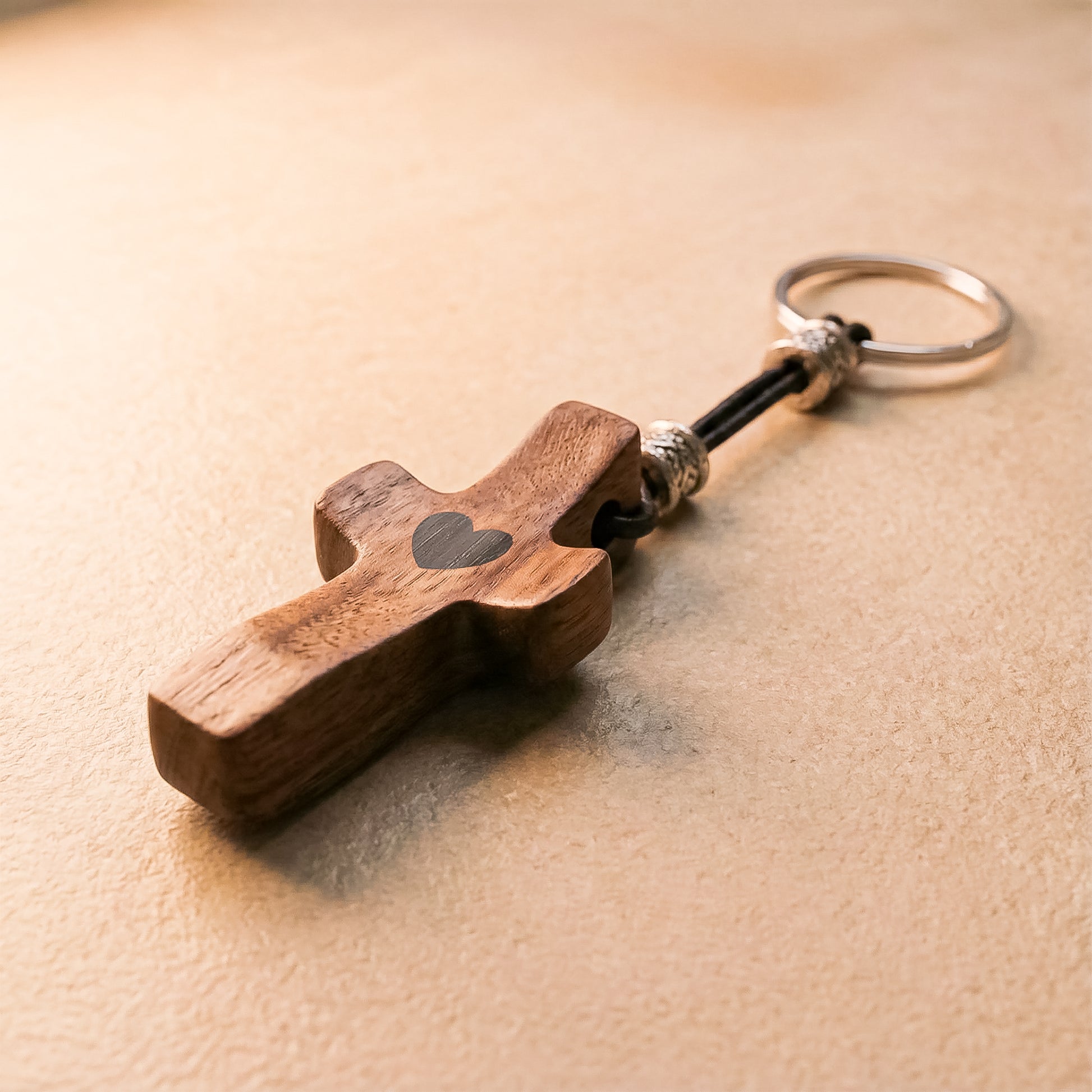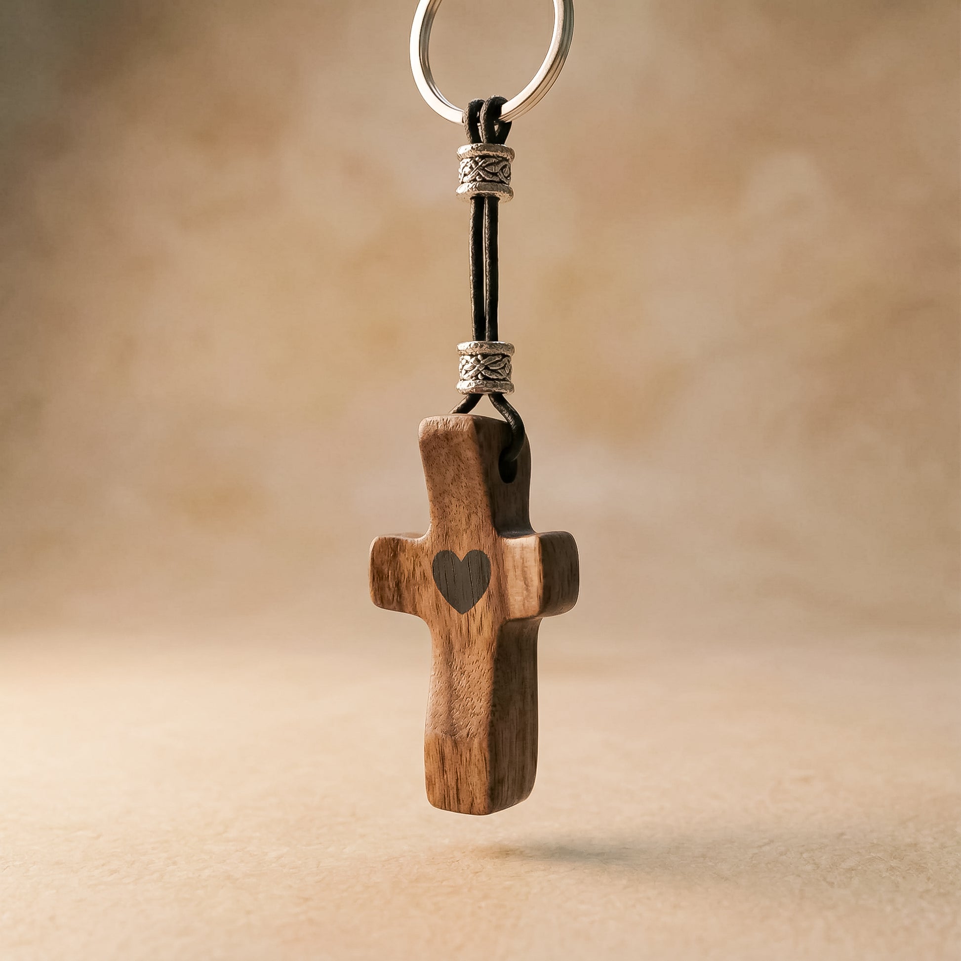 Llavero Cruz de Madera de Nogal con Corazón | Unión con Alma, Detalle con Significado