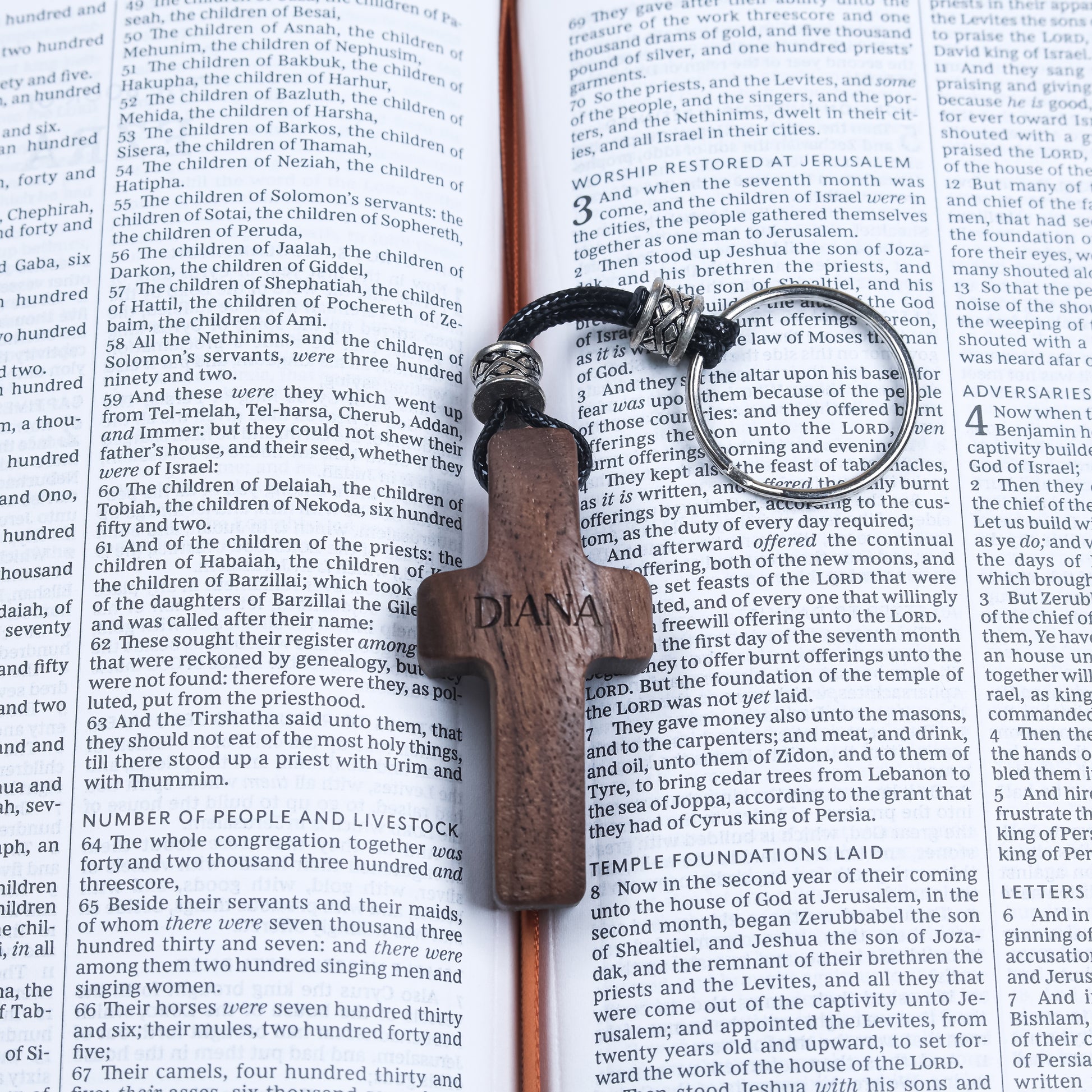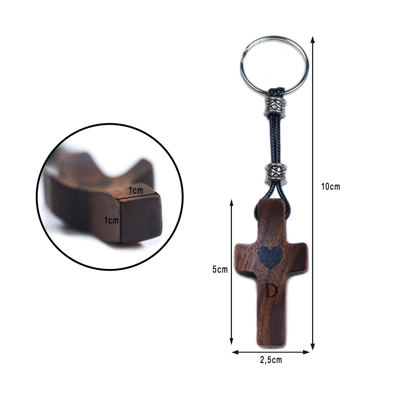 Llavero Cruz de Madera de Nogal con Corazón | Unión con Alma, Detalle con Significado