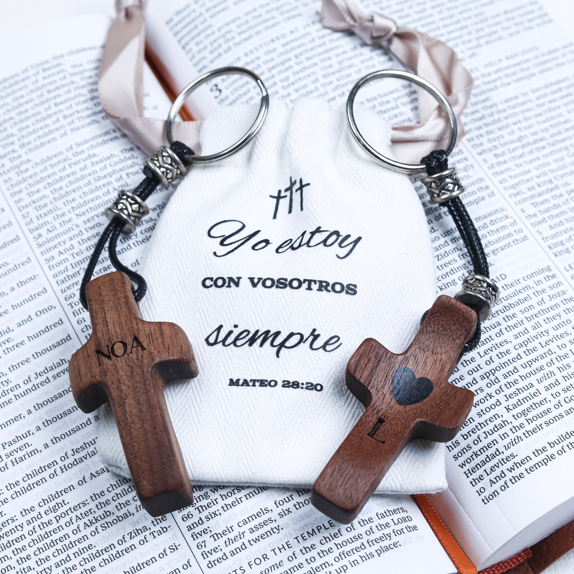 Sets llaveros Cruz de Madera de Nogal con Corazón | Unión con Alma, Detalle con Significado