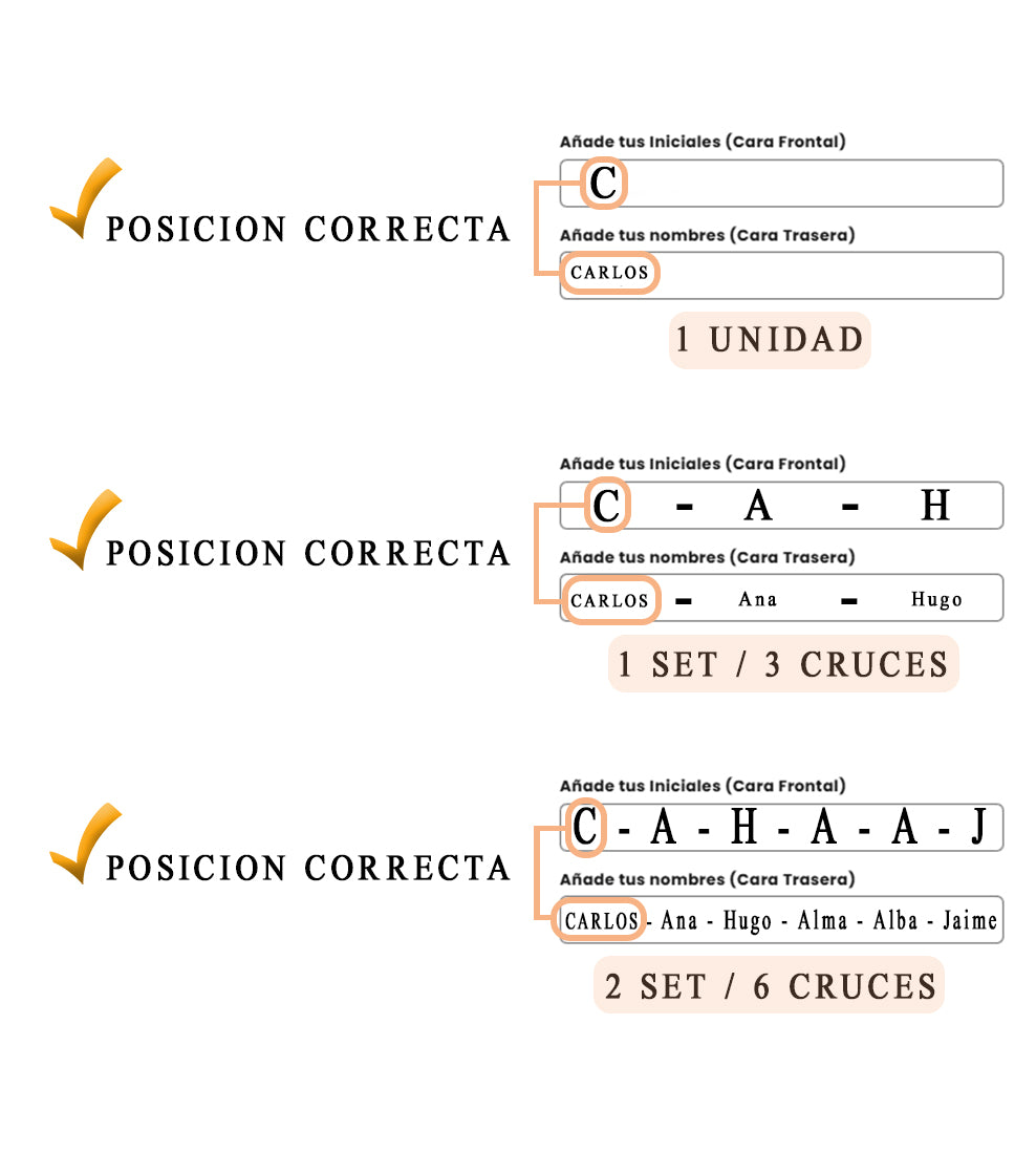 Para garantizar un grabado perfecto, coloca tu nombre e inicial en las posiciones indicadas.